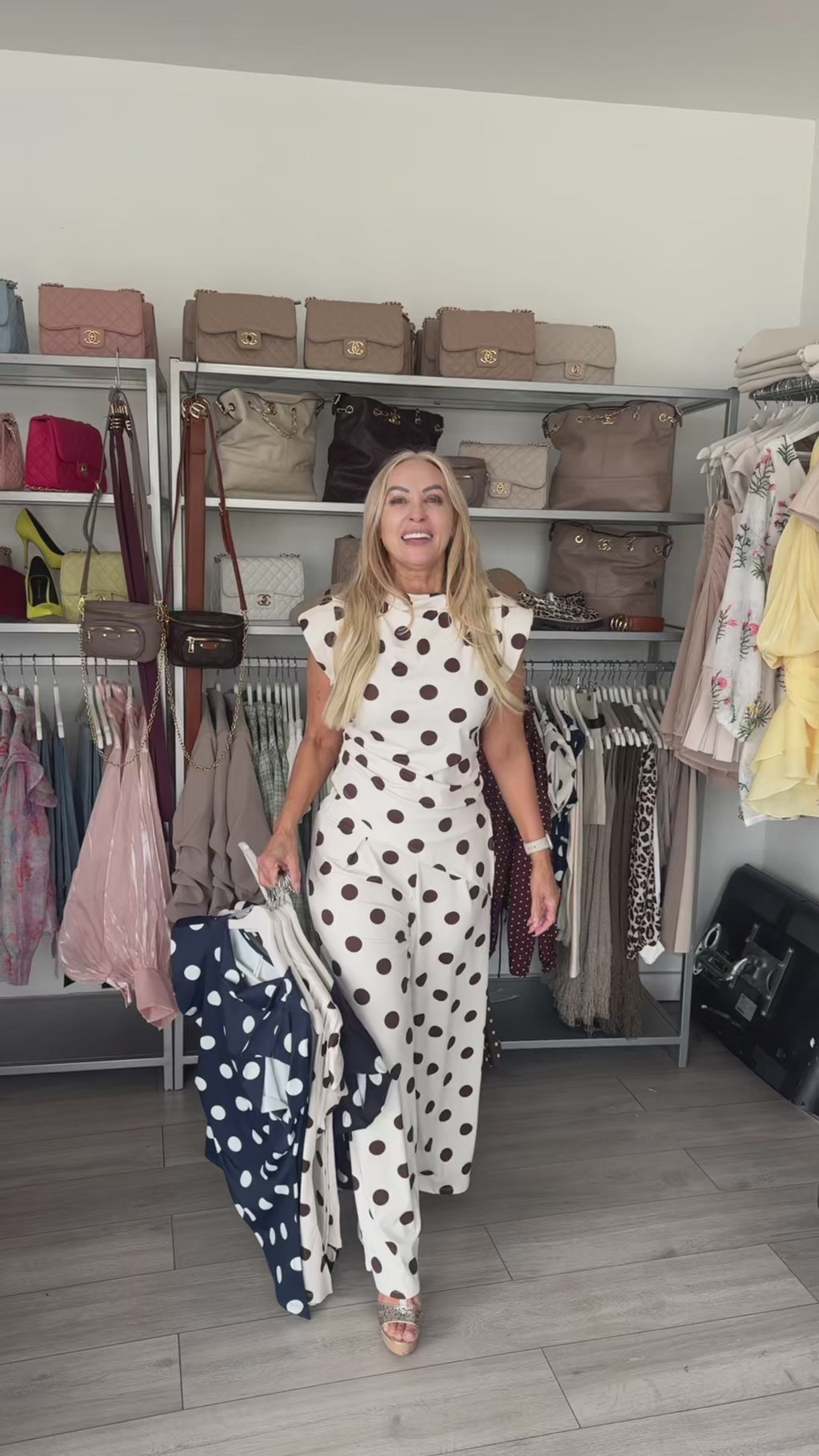 The soft, fluid fabric creates graceful movement, while the bold polka dot print adds a touch of playful charm. The relaxed silhouette flatters every figure, offering both comfort and style—perfect for day-to-night dressing.